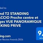 The 52 m^2 Grand T2 Standing Ajaccio Proche Centre Et Plages Vue Panoramique Parking Prive is located within 15 minutes' walk of Plage Saint-Francois and a 16-minute walk from the Roman Catholic church "Ajaccio Cathedral". The apartment features Wi-Fi, along with complimentary private parking for guests travelling by car.